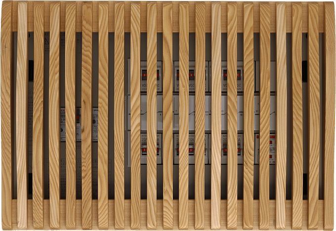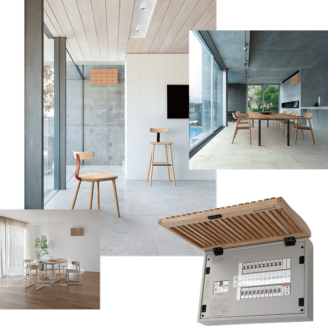 分電盤の扉には、温かみのある無垢の木材を使いました。