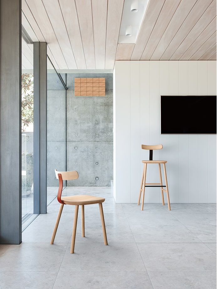 年輪の木目と、それに並行に彫り込まれた溝が相まって心地よい静けさをまとっています。